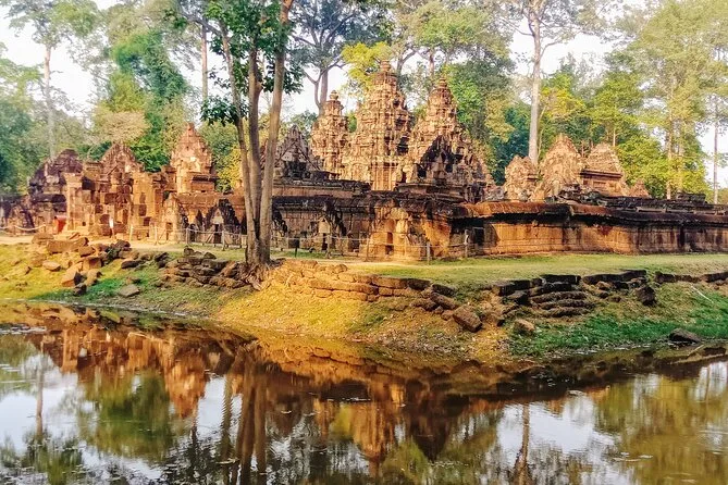 Your day includes early morning hotel pickup in Siem Reap by private air-conditioned SUV or minivan with chilled water and cold wipes throughout. You’ll have help buying your temple pass (not included), guided visits to all main temples with stories from your local guide, time for picnic breakfast (bring your own), lunch at a local restaurant near Banteay Srei, plus all tolls and parking covered before returning to your hotel mid-afternoon.