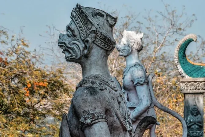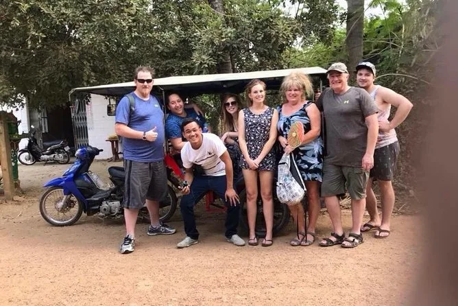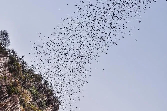 Your afternoon includes private tuk tuk transportation with a local guide who picks you up from your hotel or restaurant in Battambang, bottled water throughout the journey, all entrance fees for both killing cave and bat cave sites, plus drop-off back at your accommodation after sunset.