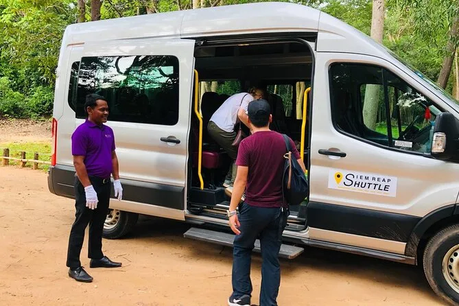 Your day includes hotel pickup and drop-off in Siem Reap by minibus or car with cold towels and iced bottled water along the way; you’ll be guided by an English-speaking local certified by Apsara Authority as you explore both Beng Mealea and Koh Ker temples before returning in the evening.