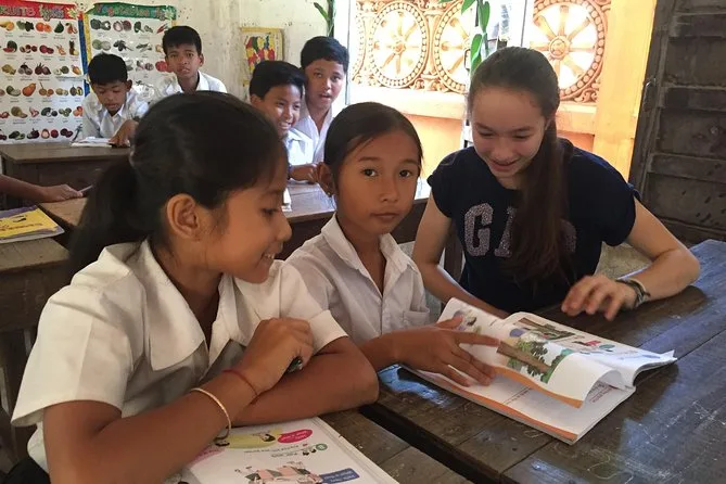 The silk farm was quieter than I thought it’d be. You could hear the looms clacking away inside — almost hypnotic. One of the women showed me how they spin thread from those tiny cocoons; my fingers got sticky just touching them. She laughed when I tried to say “silk” in Khmer (don’t ask me to repeat it). We stopped by a Buddhist monastery too — monks in orange robes sweeping leaves into neat piles. If the school’s open you might catch kids playing soccer barefoot; we did, and they shouted “hello!” like it was a game itself.