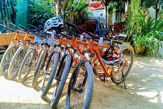 Your day includes hotel pickup in Phnom Penh by tuk tuk or minivan depending on group size, ferry crossings over the Mekong River to Silk Island (Koh Dach), use of Cannondale mountain bikes with helmets provided, guidance from an English-speaking local guide throughout your ride past fruit orchards and weaving villages, entry into workshops along the way, plus a Cambodian lunch served at a floating restaurant before returning by vehicle to your hotel in town.