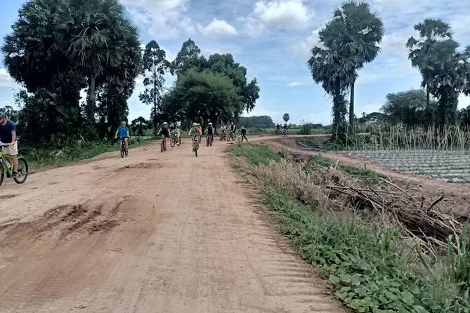 The cycling distance is around 25–30km over flat terrain on Koh Dach (Silk Island), plus ferry rides to and from Phnom Penh.