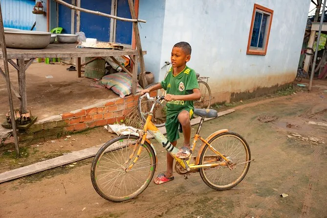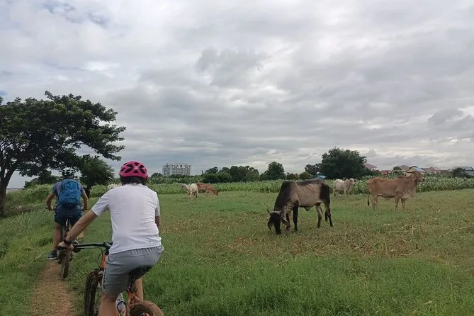 You’ll pedal quiet roads on Silk Island near Phnom Penh with a local guide, stopping at weaving workshops, fruit orchards, and family homes before sharing lunch on a floating restaurant over the Mekong River. Expect gentle cycling (about 25–30km), real conversations with locals, and moments where Cambodia just sort of sneaks up on you.