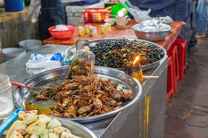 You’ll ride through Siem Reap by tuk-tuk with a local guide, tasting lort cha noodles in a family kitchen, sampling BBQ snails and even bugs at Street 60 night market, then winding down with cold beers at a laid-back bar. Expect laughter, unexpected flavors, and a real slice of Cambodian evening life.