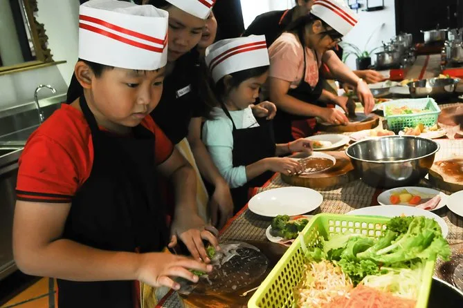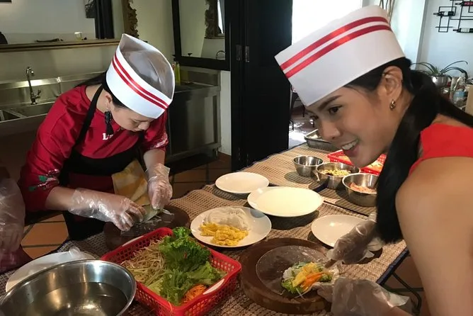 You’ll prepare fresh vegetarian spring rolls, fish amok, and banana palm dessert.