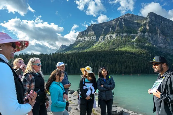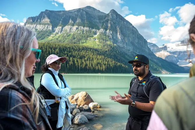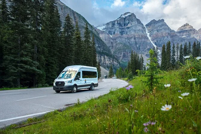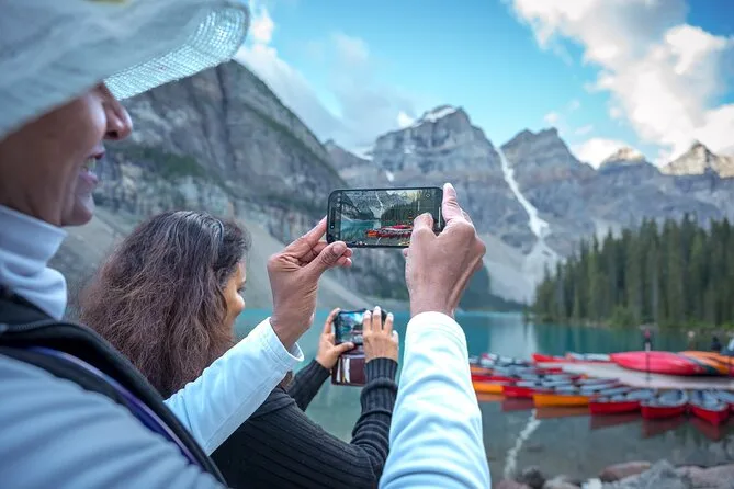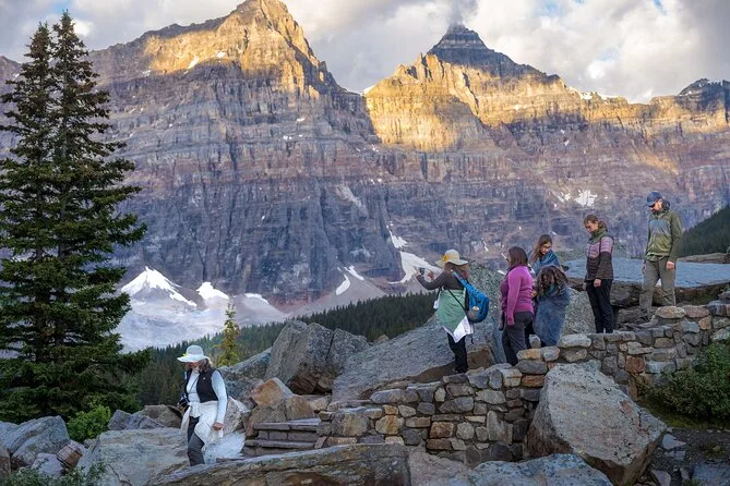 The tour begins with an early pickup in Banff before dawn to reach Moraine Lake for sunrise.