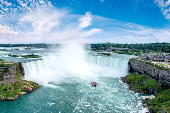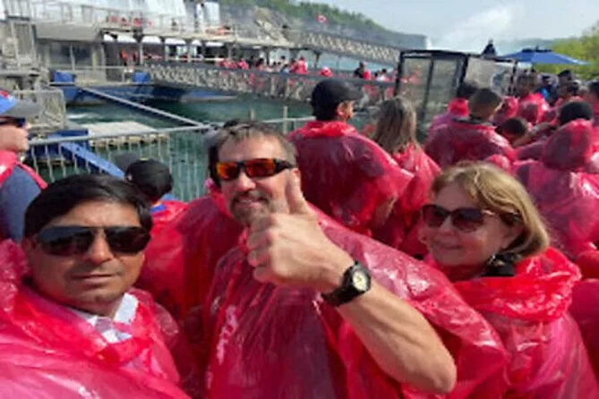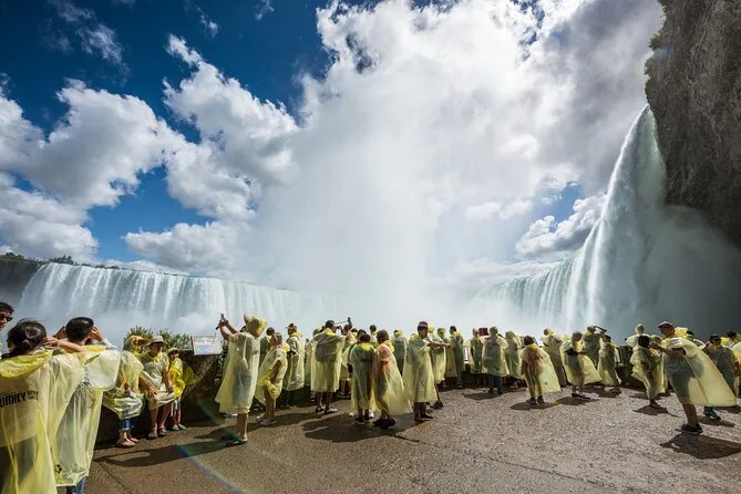Your day includes pre-reserved tickets for both Niagara City Cruises (with poncho) and Journey Behind the Falls tunnel experience, all entry fees and taxes covered, plus an expert English-speaking local guide leading your walking tour past Rainbow Bridge, Table Rock Welcome Centre, American Falls, Bridal Veil Falls, and more before finishing back at Table Rock Visitor Center.