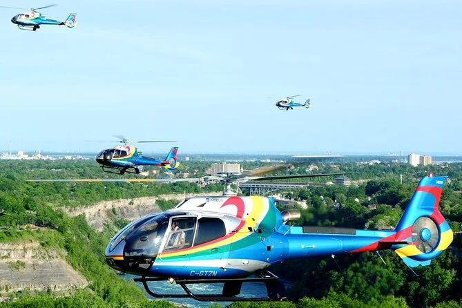 You’ll fly over Horseshoe Falls, American Falls, Bridal Veil Falls, Rainbow Bridge, Skylon Tower and more.