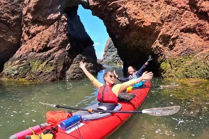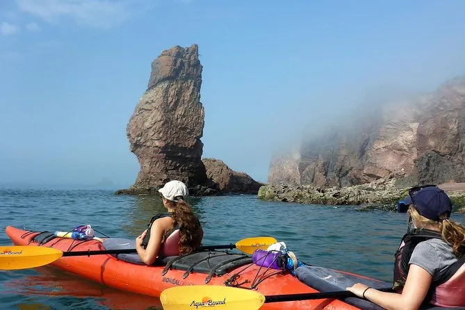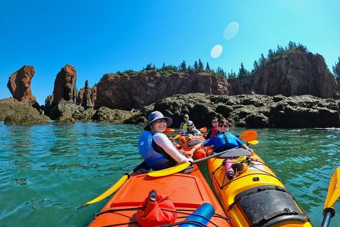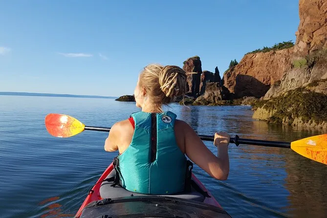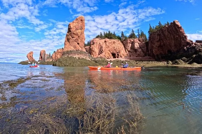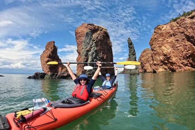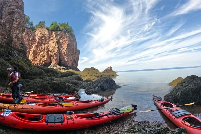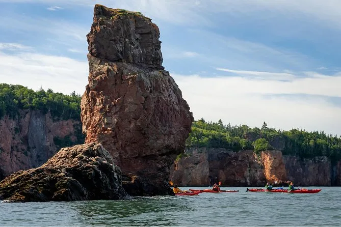 You’ll paddle past Cape Chignecto’s dramatic red cliffs with a local guide, circle the towering Three Sisters sea stacks (and maybe shout into their natural amphitheater), explore ancient lava tubes, then relax with a homemade picnic lunch in a hidden cove before returning as the tides shift around you.