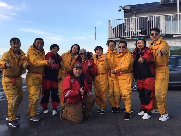 Your day includes all necessary safety gear like life jackets and insulated floatation suits (sizes XS–XXXL), guidance from a professional local guide who’s part of the Pacific Whale Watch Association network, plus flexible rebooking if no whales are sighted during your trip.