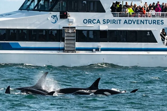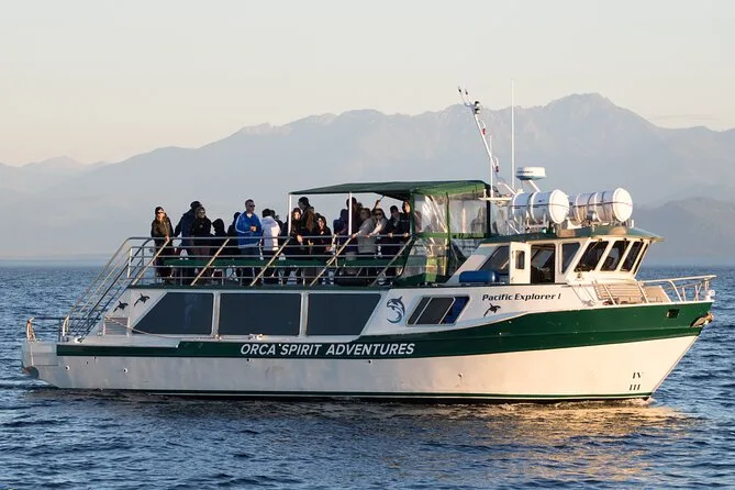 Your day includes three hours aboard a comfortable covered vessel departing from Victoria harbor, with certified marine biologists guiding your journey through Juan de Fuca Strait. Enjoy complimentary hot drinks along with access to both indoor seating and open-air panoramic decks; full bathroom facilities are available throughout your whale watching adventure before returning to shore.
