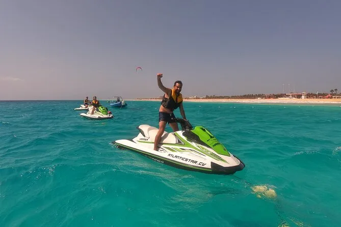 Jet ski the blue coast of Sal Island with local pickup and guide