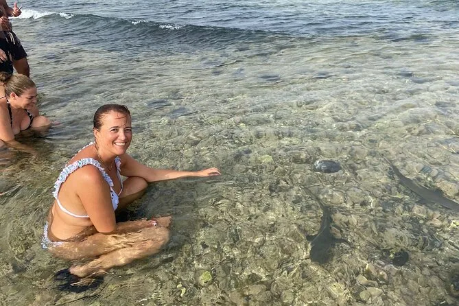 Water shoes are recommended for Shark Bay; rentals are available onsite for €2 if needed.