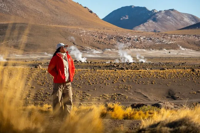You’ll ride out before dawn from San Pedro de Atacama to feel sunrise steam at El Tatio Geysers, share breakfast right by bubbling pools, spot wild flamingos in Putana Valley, and wander through Machuca village for llama skewers (if it’s open). The cold bites but the views stick with you long after you’re back.