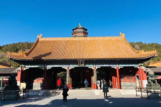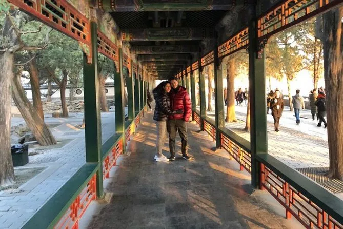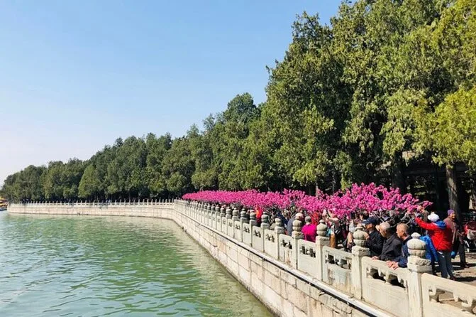 You’ll skip long lines with your pre-booked Summer Palace ticket and enter straight through the East Gate using your QR code. Explore imperial halls, stroll beside Kunming Lake, climb up to the Tower of Buddhist Incense, and wander gardens at your own pace — all with access included. Expect moments of quiet beauty mixed with lively local scenes.