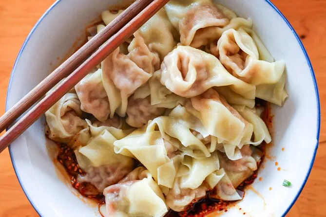 We zipped between neighborhoods I wouldn’t have found alone — old men playing cards under red lanterns, a kid chasing his own shoelace. At this tiny spot tucked behind a noodle shop, we watched wontons (they call them “Chaoshou” here) folded by hand, then dropped into chili oil that smelled like toasted garlic. The owner nodded at us but didn’t say much; her smile was enough. There was this moment when everyone at our table went quiet except for slurping. You know food is good when nobody talks.