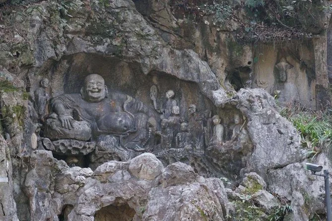 After the boat ride, we walked through Huagang Park—there were old couples feeding carp in this pond that flashed orange when the sun hit them. Someone nearby was playing erhu; it sounded kind of sad but comforting. Then we headed for Lingyin Temple. The incense smoke curled around these huge wooden doors and monks in saffron robes moved quietly between halls. There’s one hall with a thousand little Buddhas carved into the wall—I lost count trying to spot them all. The stones felt cool under my hands, and Li explained some of the stories behind each statue (I probably forgot half but one about a laughing monk stuck with me).