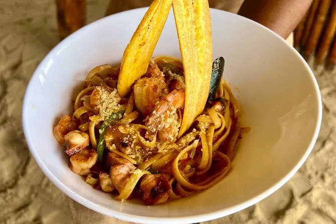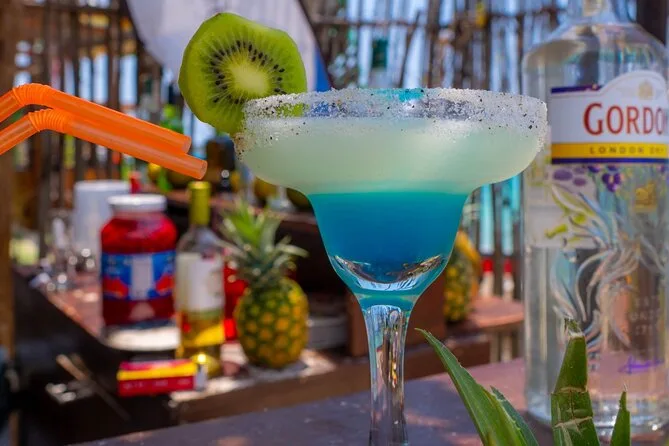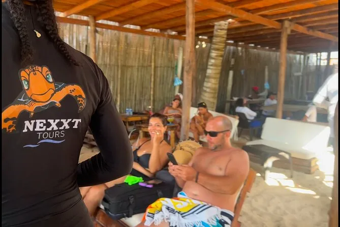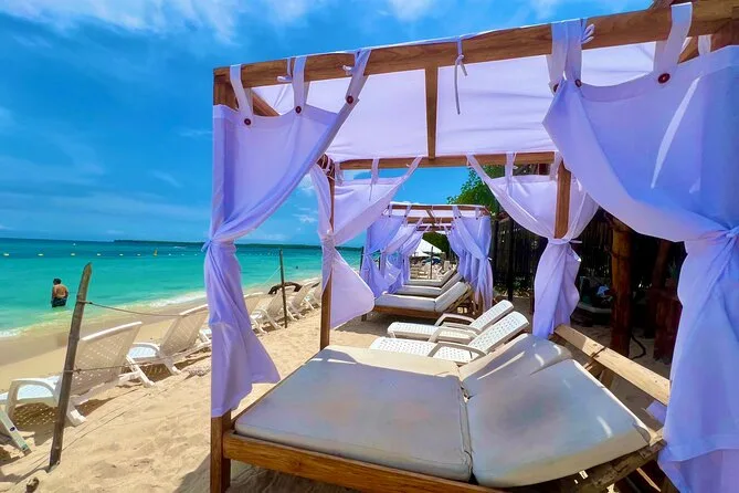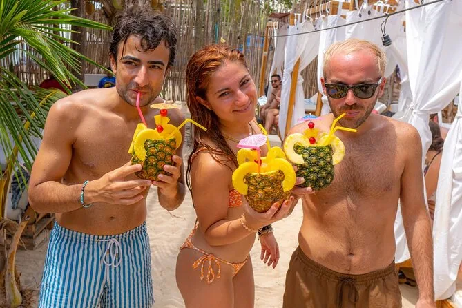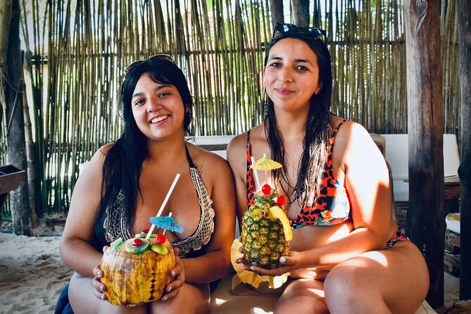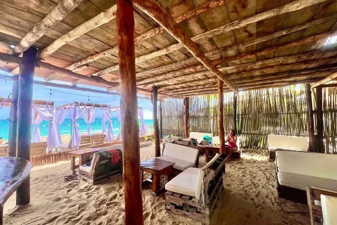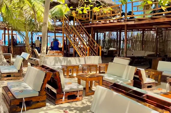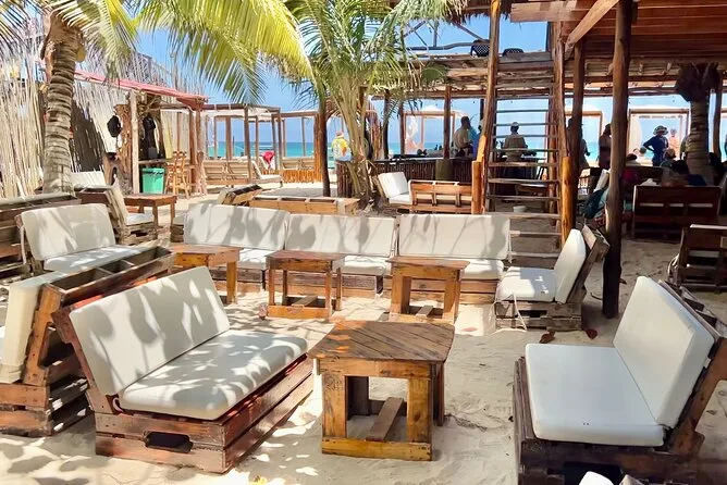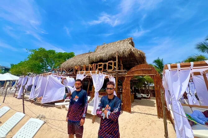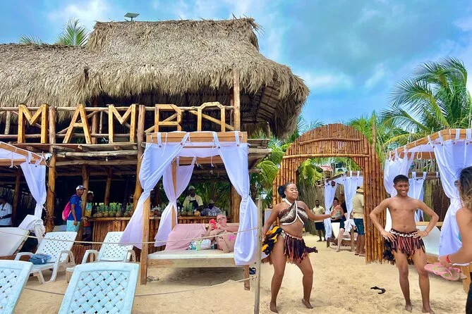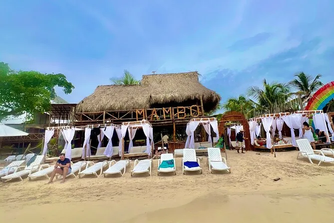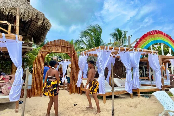 Your day includes pickup from your hotel or hostel in Cartagena with air-conditioned transport out to Baru Island, entry to Mambo Beach Club with full use of sun loungers, shaded huts, bathrooms and lockers; there’s also a welcome drink waiting when you arrive plus a lunch voucher to use however you want on their menu—and a friendly bilingual guide handling all the details along the way before bringing you back mid-afternoon.