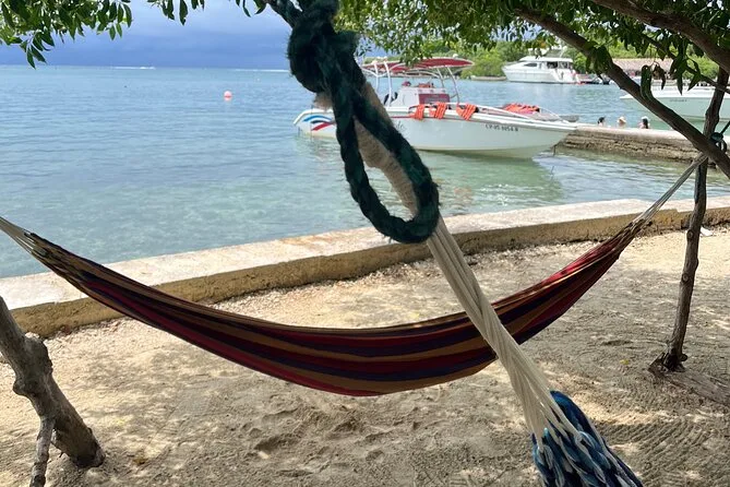 I wasn’t sure what to expect from snorkeling here — I’ve done it before, but Isla Grande had this quiet undercurrent when we dropped anchor. The mask felt cold at first, then I forgot about it because there were flashes of yellow fish everywhere. Our guide dove down to point at coral shapes I would’ve missed; he tapped his watch underwater like “time’s up” but let us linger anyway. Back on the boat, someone passed around patacones with hogao sauce — messy fingers, nobody cared. We stopped at a private island after that (I never caught its name), just hammocks and shade and the sound of Gatorade bottles popping open.