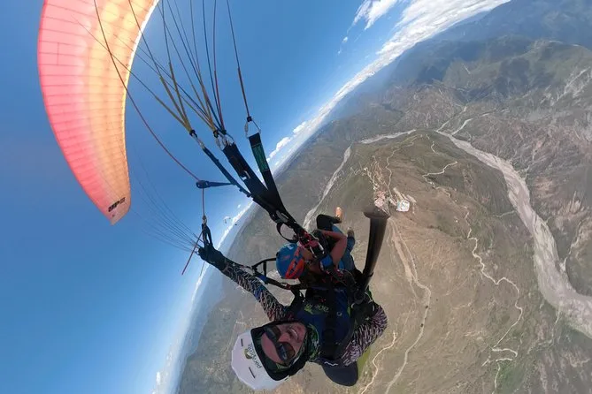 You’ll stand at Chicamocha Canyon’s edge, harness up with an experienced local pilot, and run straight into open sky — floating high above the river and mountain ridges. Expect wild views, quick laughs with your guide, bottled water after landing, and a feeling that sticks around long after your sneakers hit ground again.