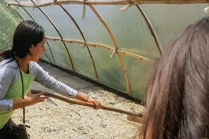 Your day includes hotel pickup and drop-off (or airport drop-off if needed), fruit tasting at a local market before heading out to Guatapé’s countryside, full access to a working coffee farm where you join every step from picking to brewing your own cup, entry fees covered throughout; plus a traditional Colombian lunch in town before wandering colorful streets—and all transport is by comfy air-conditioned vehicle.