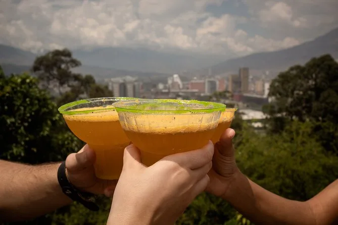 Your tour includes organic coffee at the start plus a local beer or juice at Nutibara Hill; water is also available.