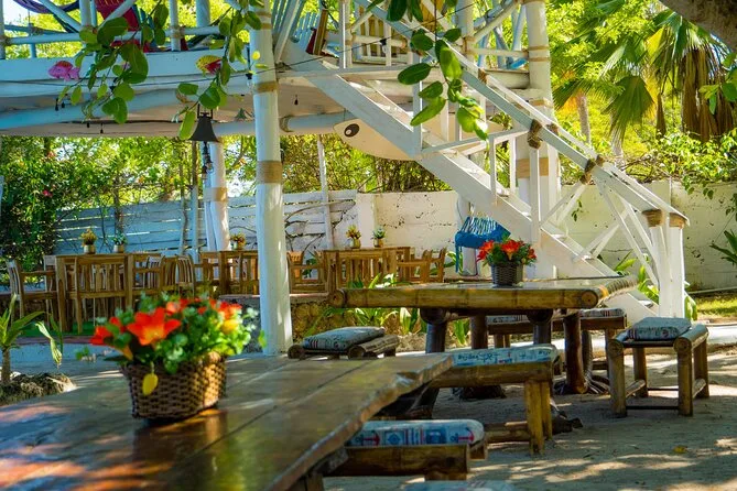 A hot lunch with chicken, fish or vegetarian options is served at one of the island stops during your day trip.