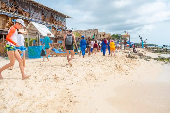 The tour lasts a full day, starting in the morning from Cartagena and returning after dark following the plankton swim at Baru Lagoon.