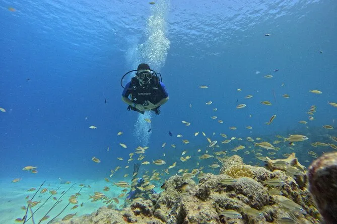 Your day includes private pickup in San Andres, all SCUBA gear (including wetsuit and dive computer), snacks between dives, health insurance coverage during the activity, plus guidance from an experienced local diver before returning to your accommodation after about four hours in total.