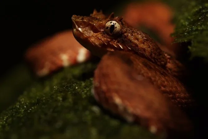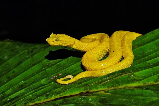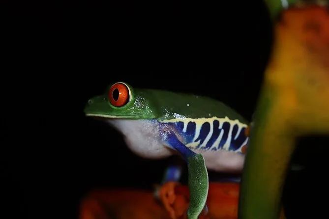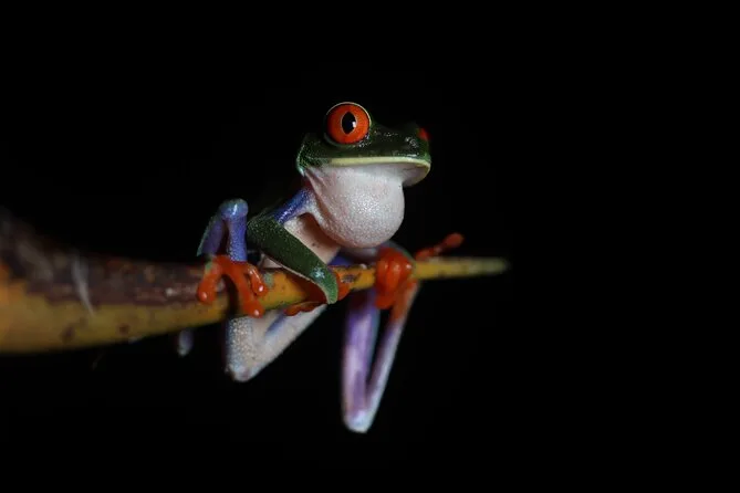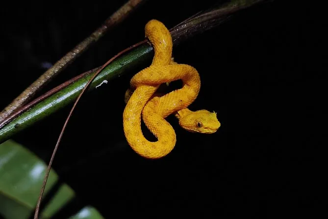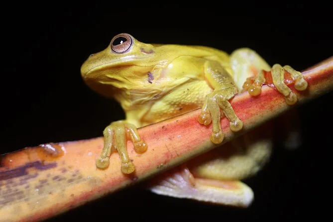 You may spot frogs like red-eyed or Blue Jeans frogs, snakes such as vipers or corals, insects, sloths, possums, anteaters, and more.