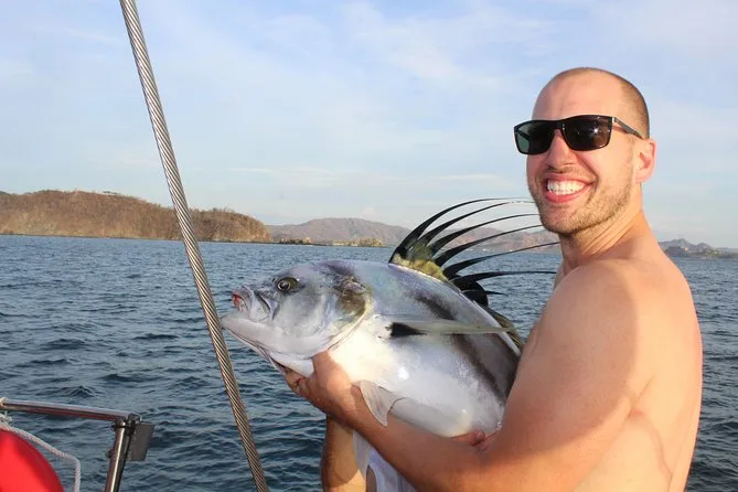 Your afternoon includes guided snorkeling in calm waters with all equipment provided, a fresh-cooked lunch plus appetizers and fruit, unlimited drinks with premium bottle service from an open bar, fishing gear if you want it—all while sailing from Playa Flamingo until sunset alongside a friendly local crew.