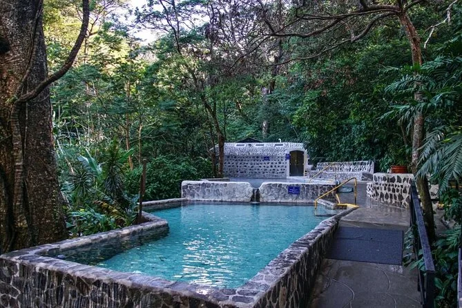 The tour includes ziplining, horseback riding or tractor tram ride, water slide, visit to a sugar cane mill (trapiche), hot springs with sauna and volcanic mud baths.