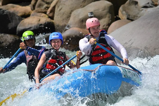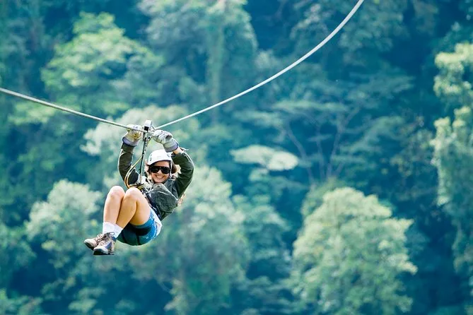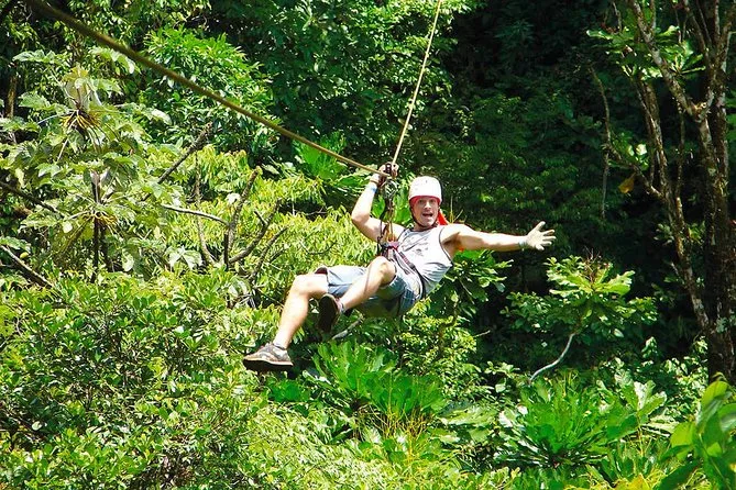 You’ll start high above La Fortuna on zip lines soaring over jungle canyons before paddling down Class II-III rapids on the Balsa River with guides who actually make you laugh. There’s fresh fruit breaks mid-river and a proper Costa Rican lunch at a local farm before heading back—expect adrenaline, muddy shoes, and maybe new friends by the end.