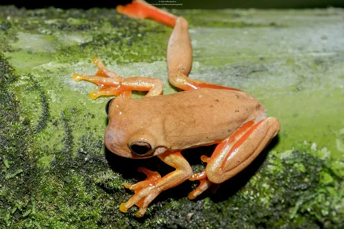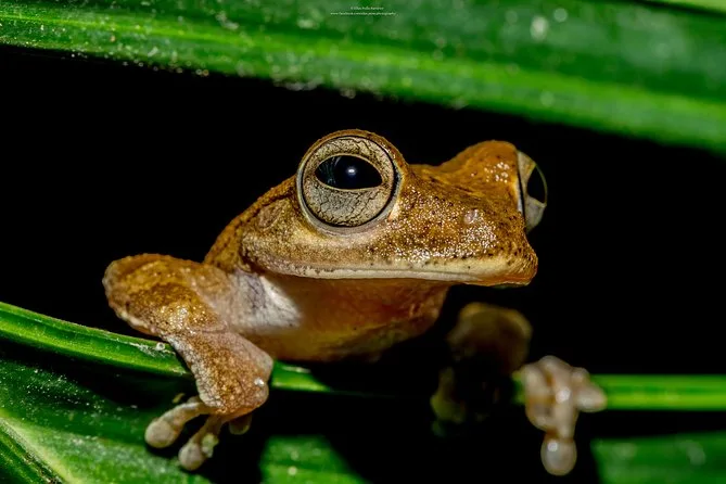 You may spot frogs (like red-eyed tree frogs), sloths, bats, insects, reptiles, and sometimes mammals during the night walk at Ecocentro Danaus.
