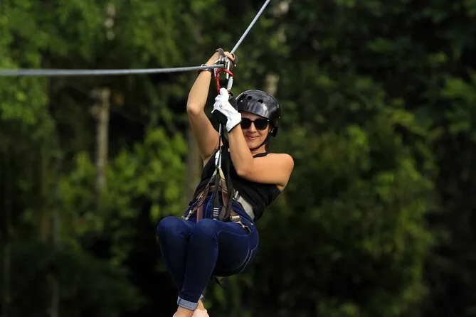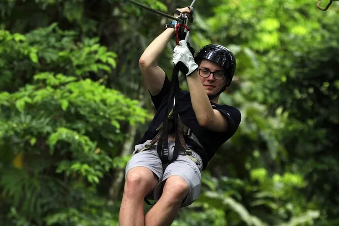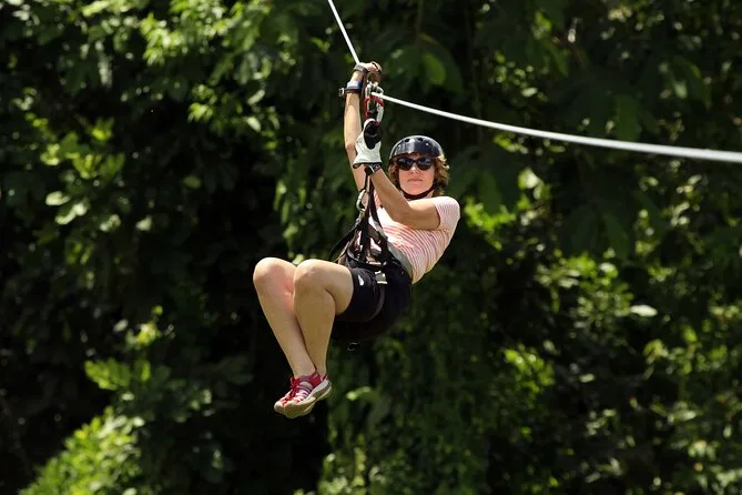 You’ll fly through rainforest canopies near La Fortuna on nine ziplines with views of Arenal Volcano (if weather plays nice), spot wildlife like sloths or toucans with your local guide nearby, and share laughs with fellow travelers — all in just a couple hours. Perfect if you want adventure without going overboard.