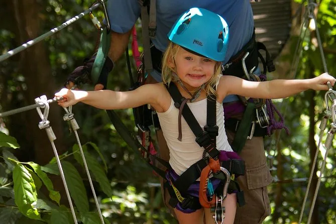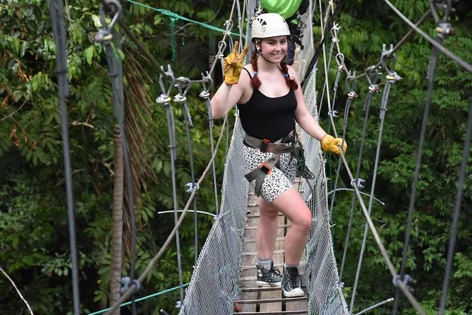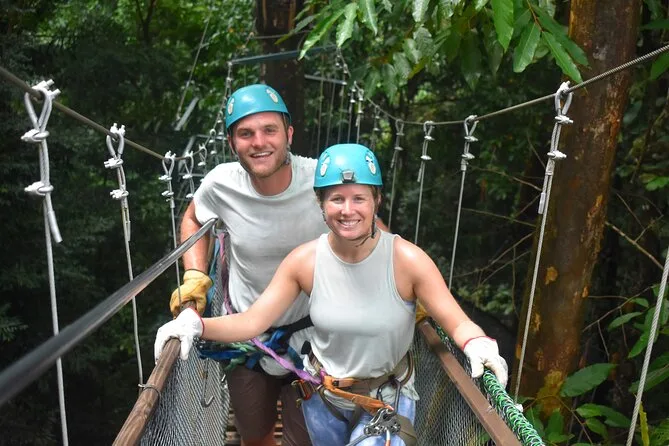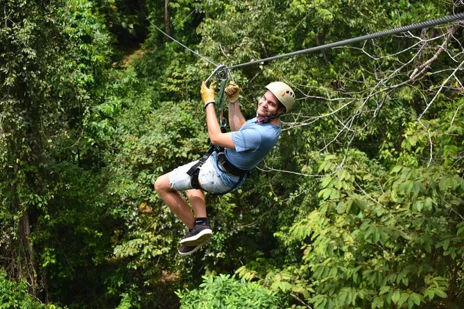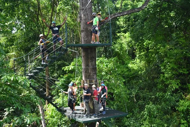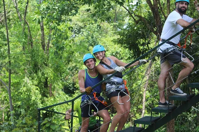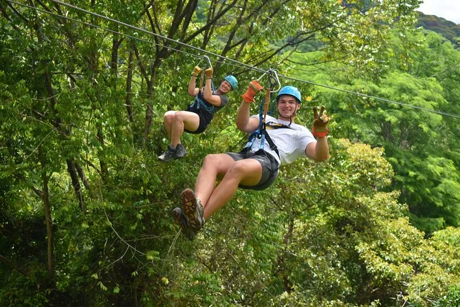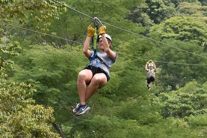 You’ll fly above Manuel Antonio’s rainforest on Central America’s longest twin zip line with local guides leading the way. Cross hanging bridges, spot wildlife midair, and pause for fresh fruit before sitting down to a Costa Rican lunch with your group. Expect laughter, some nerves—and views you’ll carry home long after you land.