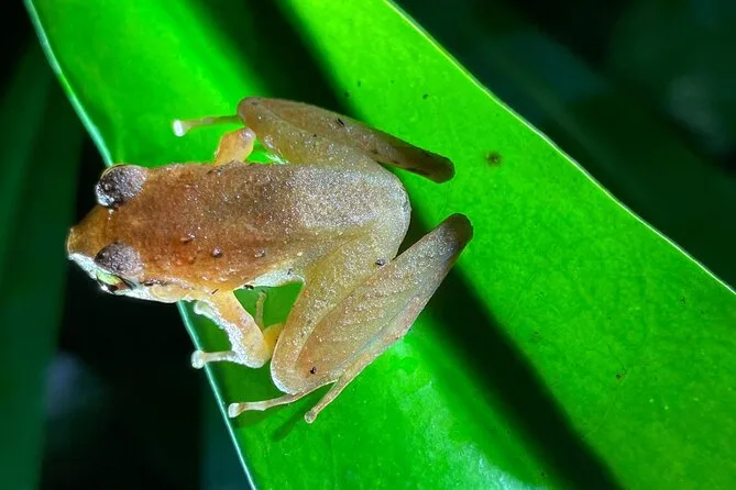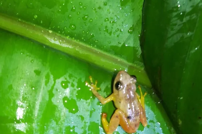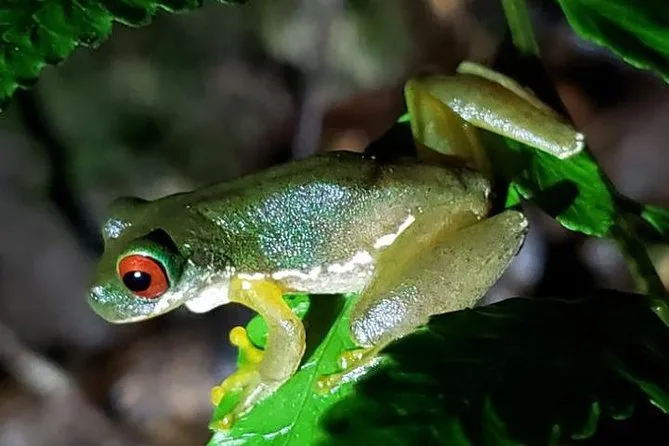 We were only a few minutes from the reserve entrance when someone in our group whispered “look!” and there was this tiny green frog clinging to a leaf like it owned the place. Andrés snapped a photo for us — he does that for every animal we spot, which is kind of great because my hands were shaking too much to take a decent picture myself. The trail at Refugio de Vida Silvestre is actually pretty smooth (I was worried about tripping), but you do need to watch your step since some roots sneak up on you in the dark. There were families with kids and even an older couple who seemed more agile than me somehow.