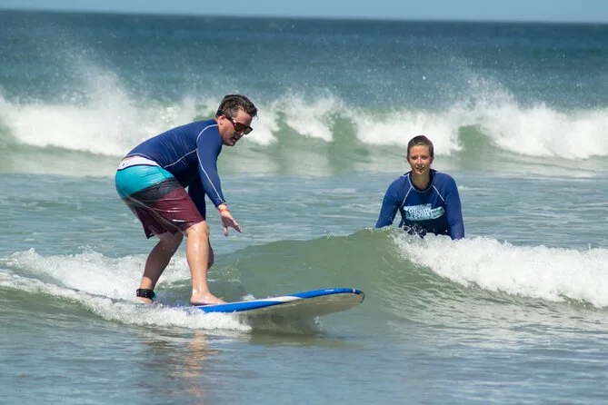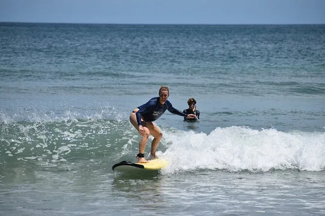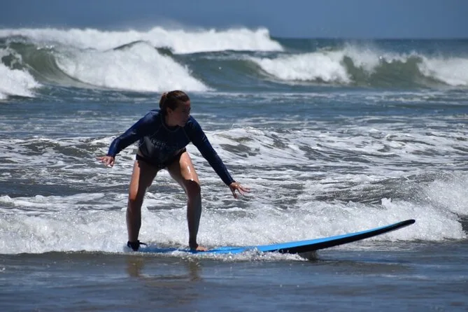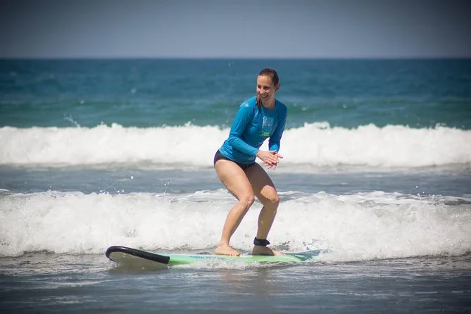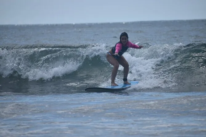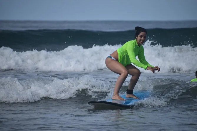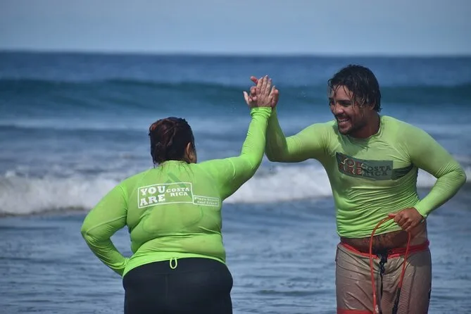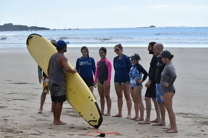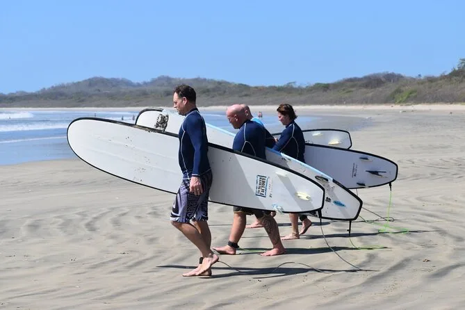 Your day includes roundtrip pickup from Playa Grande, Flamingo or Tamarindo plus all equipment like surfboard and rash guard shirt. You’ll have a professional local instructor guiding you throughout the private surfing lesson, enjoy fresh tropical fruit and cold water during your break, and finish up with access to showers and lockers so you can clean up before heading out again.