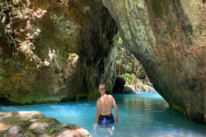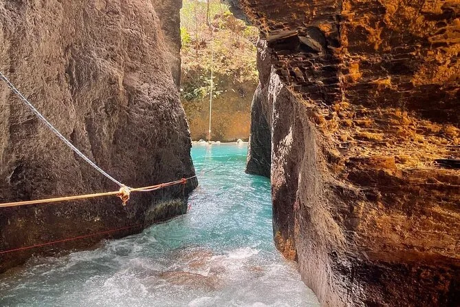 Yes, there’s a 25-meter swim needed to reach the waterfall pool at the end of the trail.