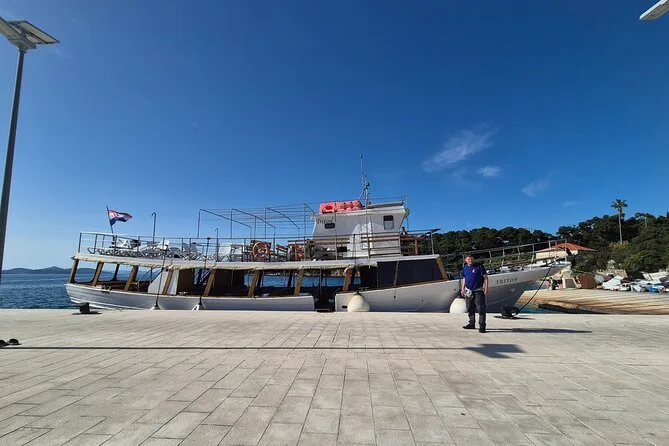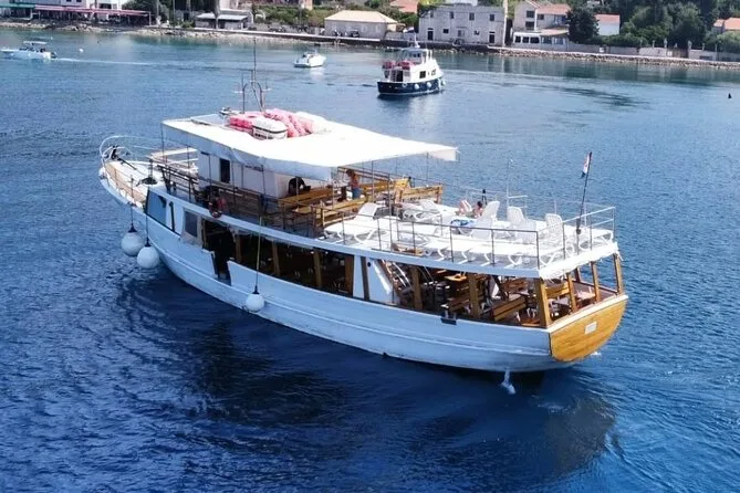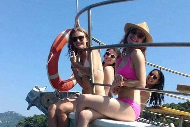 Your day includes boarding at Port of Gruž in Dubrovnik with a multilingual local guide leading you to Lopud, Šipan, and Koločep islands by comfortable boat. Enjoy unlimited wine, soft drinks and bottled water all day; WiFi onboard; access to two decks with sun chairs; onboard restrooms; all fees covered; plus optional hotel pickup or lunch depending on your booking choice.
