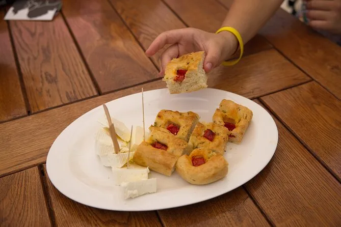 You get a bottle of water upon arrival plus one drink token (water, juice, beer or wine); snacks are available for purchase.