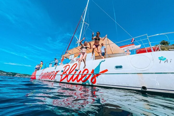 Catamaran day trip from Split to Hvar swim stops local lunch