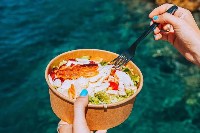 Back on board, there was chicken salad waiting (vegetarian option too if you ask), and finally the open bar kicked in — wine tasted better than I expected but maybe that’s just being out on deck with salty hair. We stopped again at one of those Pakleni bays where nobody said much; everyone just drifted in and out of the water or lay around half-asleep. On Šolta Island, someone passed around homemade cake while music played quietly over the speakers — not party music exactly, but enough that people started dancing by accident. The last bit back to Split felt slow in a good way. I kept thinking about that lavender scent and how sunburned my nose would be tomorrow.