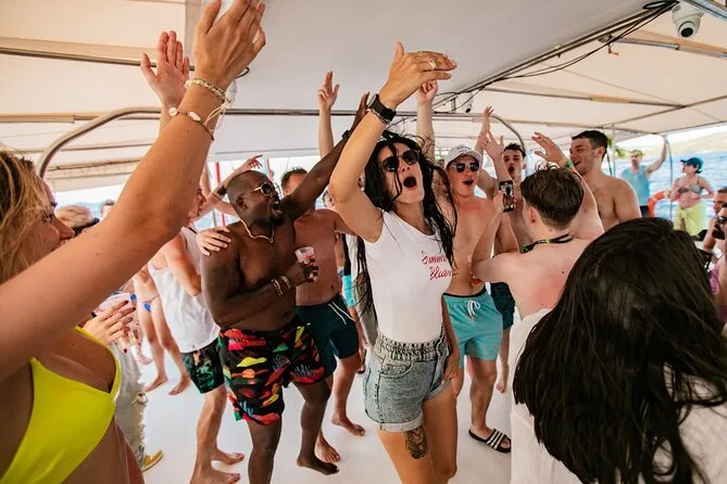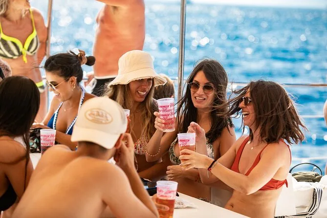 Yes, there’s an open bar with beer, wine, soft drinks, coffee, and water after the first swim stop.