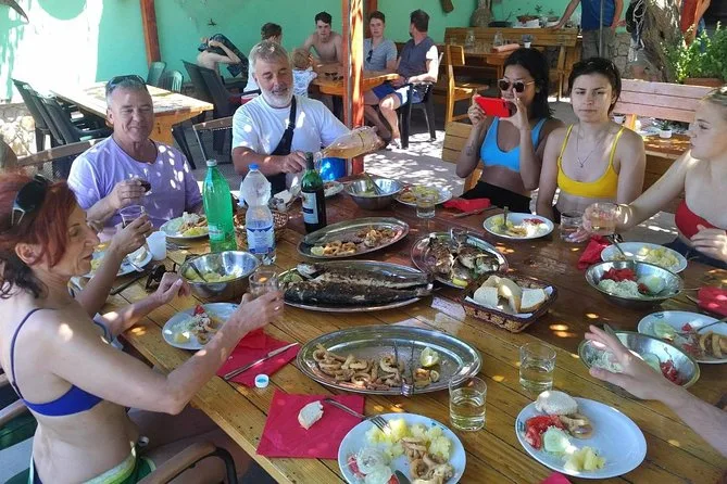 Your day includes morning departure from Zadar’s Punta Bajlo with free parking, all fees and taxes covered, swimming stops at Katina or Lavdara and Pinizelić (weather permitting), sandwiches and snacks onboard plus drinks like wine or soda, lunch at Suha Punta’s local tavern where you can choose between grilled fish or meat with sides and salad—and return transport back to Zadar by early evening.