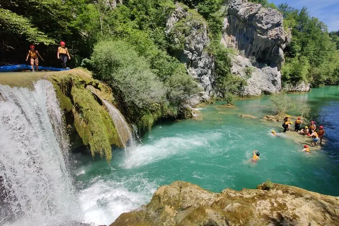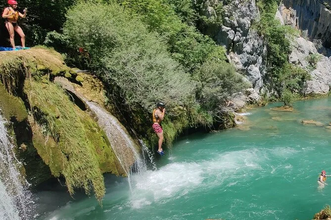 You’ll glide through emerald-green water on a kayak day trip near Plitvice Lakes, try optional waterfall jumps (from 1 to 8 meters), swim behind cascades, spot wildlife like turtles or trout, and end up sharing laughs with your guide over cold drinks at the riverside terrace. It’s all gear-included — just bring your sense of adventure.