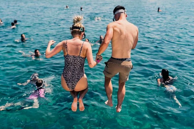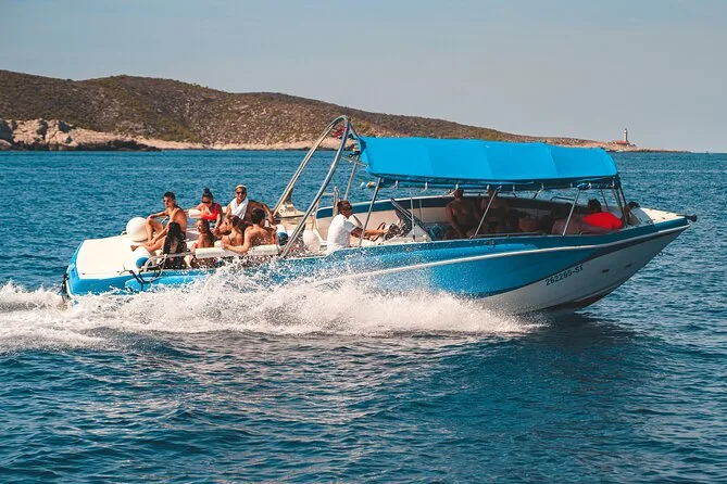 Your day covers speedboat rides between Split, Ciovo Island’s lively beach bar scene under pine trees, snorkeling time in Krknjasi Bay’s Blue Lagoon with all safety equipment provided (including goggles), plus water onboard so you don’t have to worry about staying hydrated between swims or walks through Trogir’s old town streets.