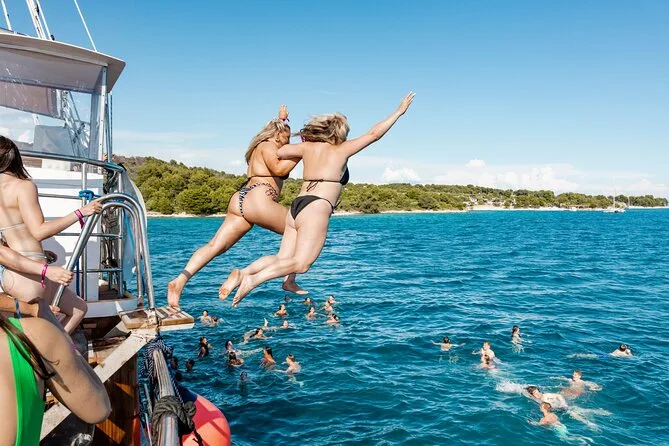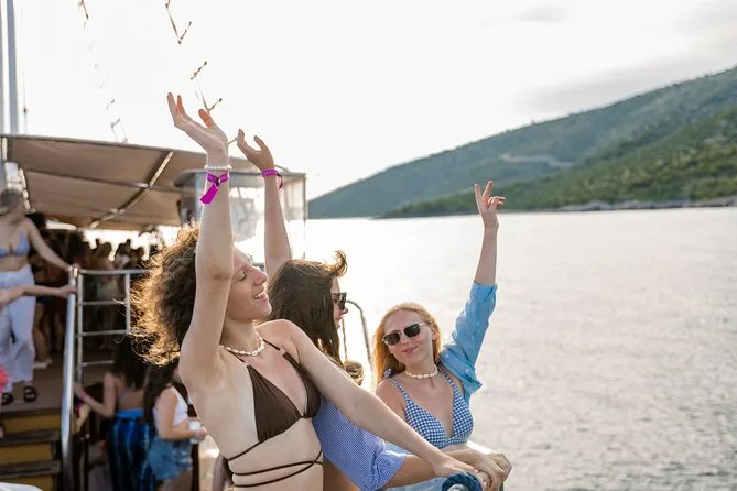 Your day includes live DJ sets throughout the cruise, welcome shots as soon as you step aboard, attentive onboard hosts ready to help out or answer questions anytime, WiFi access for sharing those sea-soaked moments instantly, a refreshing swim stop at the famous Blue Lagoon, plus free priority entry into one of Split’s top nightclubs once you’re back ashore.