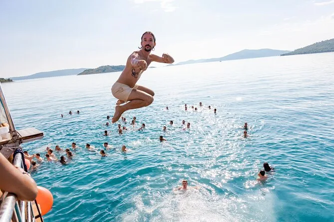 You’ll jump straight into Split’s biggest boat party—live DJ thumping as you cruise to the Blue Lagoon for a swim stop. Hosts keep things friendly while you sip drinks from affordable bars or chill in comfy booths. After dancing under sunset skies, your ticket gets you free entry to a top Split nightclub—if you’ve got energy left.