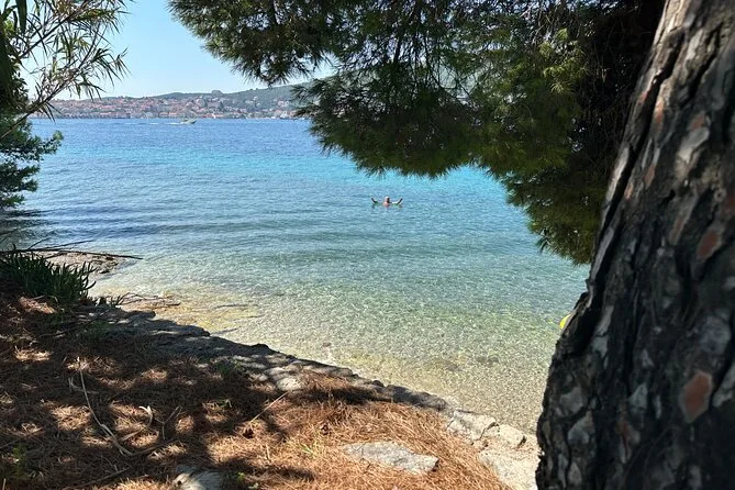 The first stop was a quiet bay on Ugljan island. Some people jumped straight in — I hesitated because honestly, cold water isn’t my thing. But then I dipped my toes in and it wasn’t bad at all; salty and fresh at once. There was this faint pine smell from somewhere up the hill. A couple from Germany stayed on the boat sunbathing under the awning, just chatting away while music played softly in the background. Marko pointed out little fish darting under our feet when we finally got in with snorkels (gear’s included, so no need to bring your own).